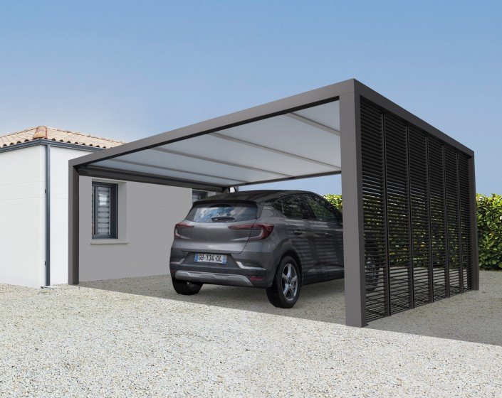 Aluminium-Carport Trigano – LIBECCIO + 3 Sichtschutzwände – 16 m²