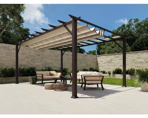Aluminium Pergola, Pavillon Florenz 11×16 inkl. verstellbarem Sonnensegel 350 x 505 cm Cocoa dunkelbraun