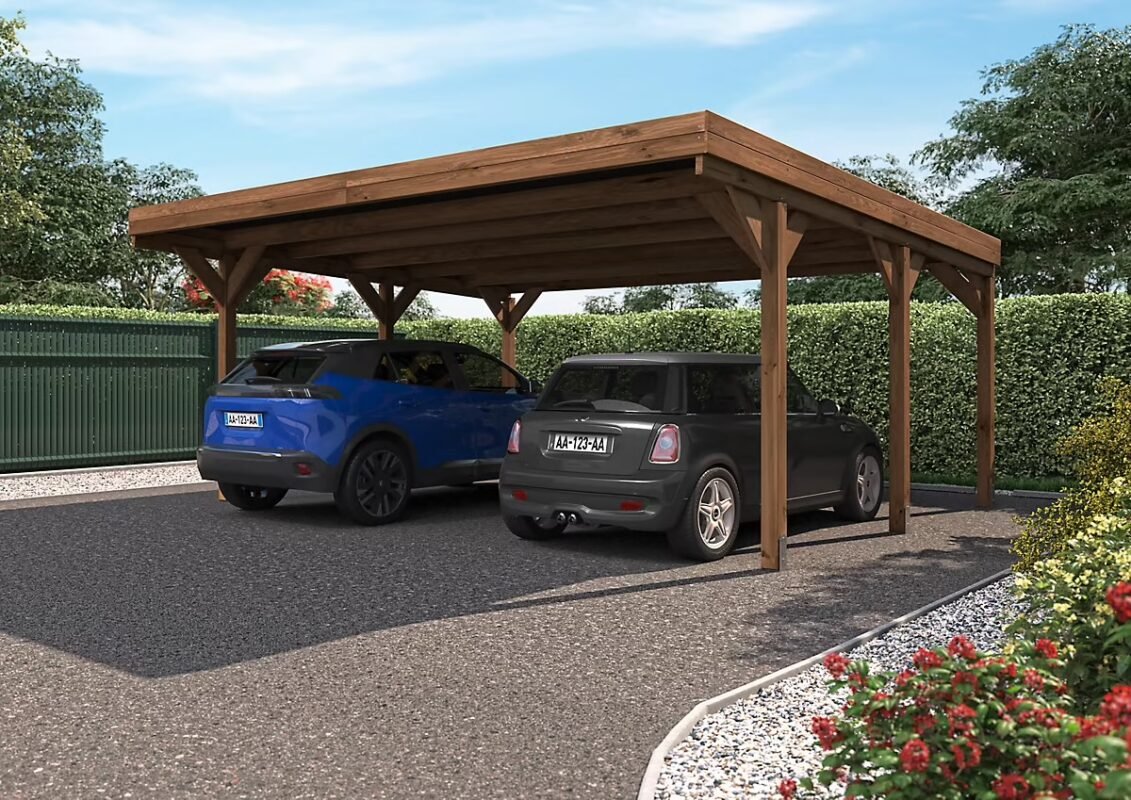 Victor Cerland Doppelcarport aus Holz mit Flachdach