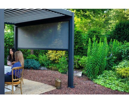Braucht Dein Garten einen stilvollen Schattenspender? Kein Problem. Mit der Pergola 3x3 Lamellendach inklusive herunterziehbarem Sonnenrollo wirst Du eine angenehme Wohlfühlatmosphäre schaffen können. Pergola 3x3 Lamellendach inklusive herunterziehbarem Sonnenrollo Darum solltest Du zugreifen: Die Pergola Mirador Classic ist ein stabiler und eleganter Rahmen aus pulverbeschichtetem Aluminium, ergänzt durch anpassbare Lamellen aus robustem, verzinktem Stahl für die Bedachung. Mit einer Kurbel kannst Du die Lamellen nach Belieben ausrichten und so den gewünschten Sonnenschutz einstellen. Die beeindruckende Konstruktion mit kräftigen Aluminiumpfosten (111 x 111 mm) bietet zuverlässigen Schutz vor Sonneneinstrahlung und Regen. Eine integrierte Regenrinne sorgt für die Ableitung des Regenwassers über die Aluminiumpfosten. Das Set enthält zudem ein 3-Meter-Sonnenrollo, das stufenlos einstellbar ist und den Komfort bietet, den Du brauchst. Festgezurrt: Die Pergola Mirador Classic ist die perfekte Lösung für variablen Sonnenschutz in Deinem Garten.
