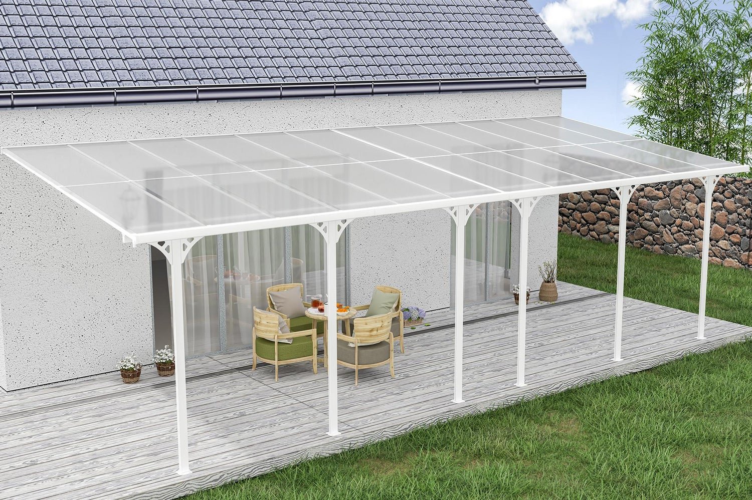 Angebaute Pergola/Carport 24m² KLEO 800L300 Aluminium Weiß