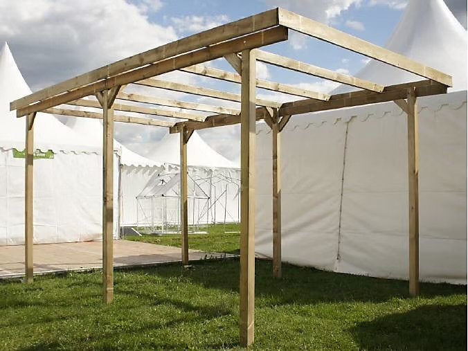 - Obwohl die Carportkonstruktion durchlässig und leicht ist, um sich gut in die Umgebung einzufügen, machen ihn seine robuste Bauweise und die 6 dicken Pfosten mit einem Querschnitt von 9x9 cm absolut wetterfest.