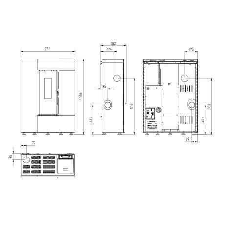 Tipp: Wir bieten Ihnen diesen Ofen auch mit oberem Rauchrohranschluss als Myrna Q Plus sowie ohne Warmluftkanalisierung als Pelletofen Myrna!