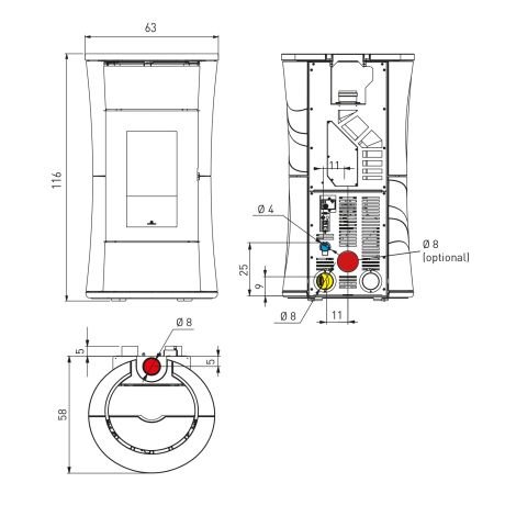 - Ø Rauchrohranschluss: 80 mm