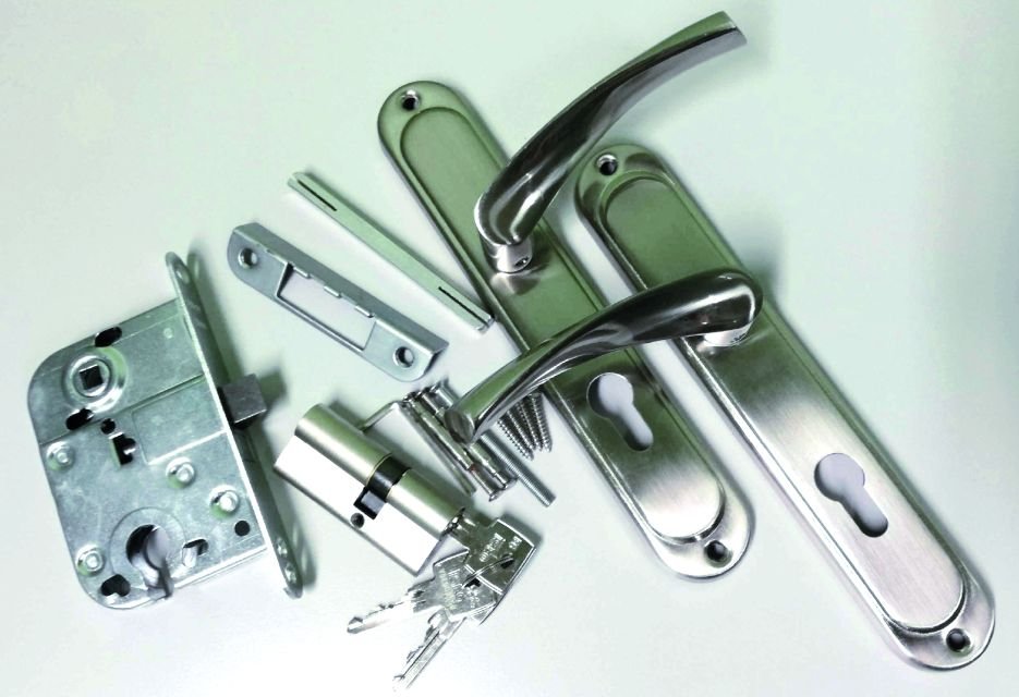 - große Doppeltür mit Fenstern und Türschloss