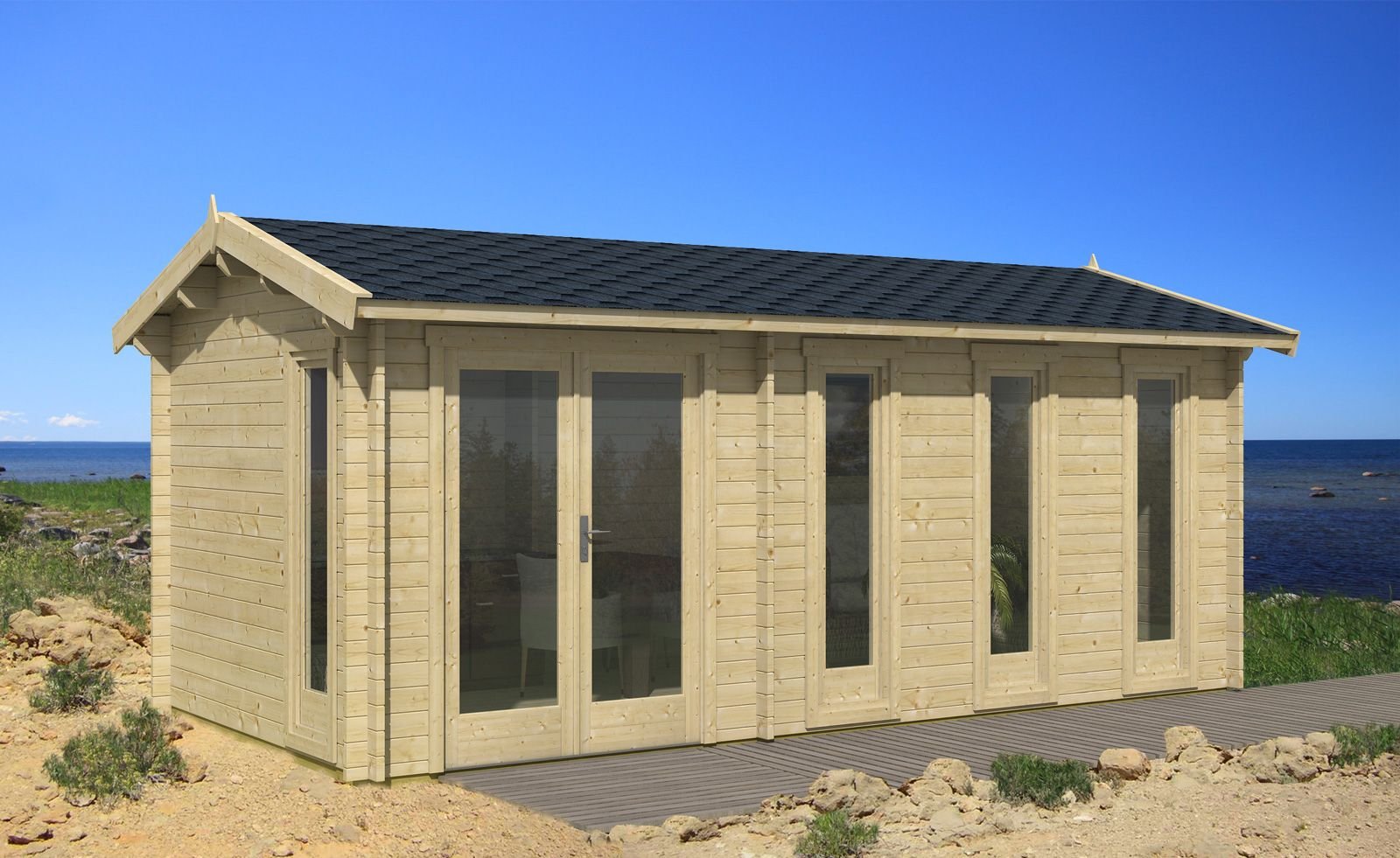Gartenhaus ‚Eden‘ Fichtenholz naturbelassen 605 x 298 cm