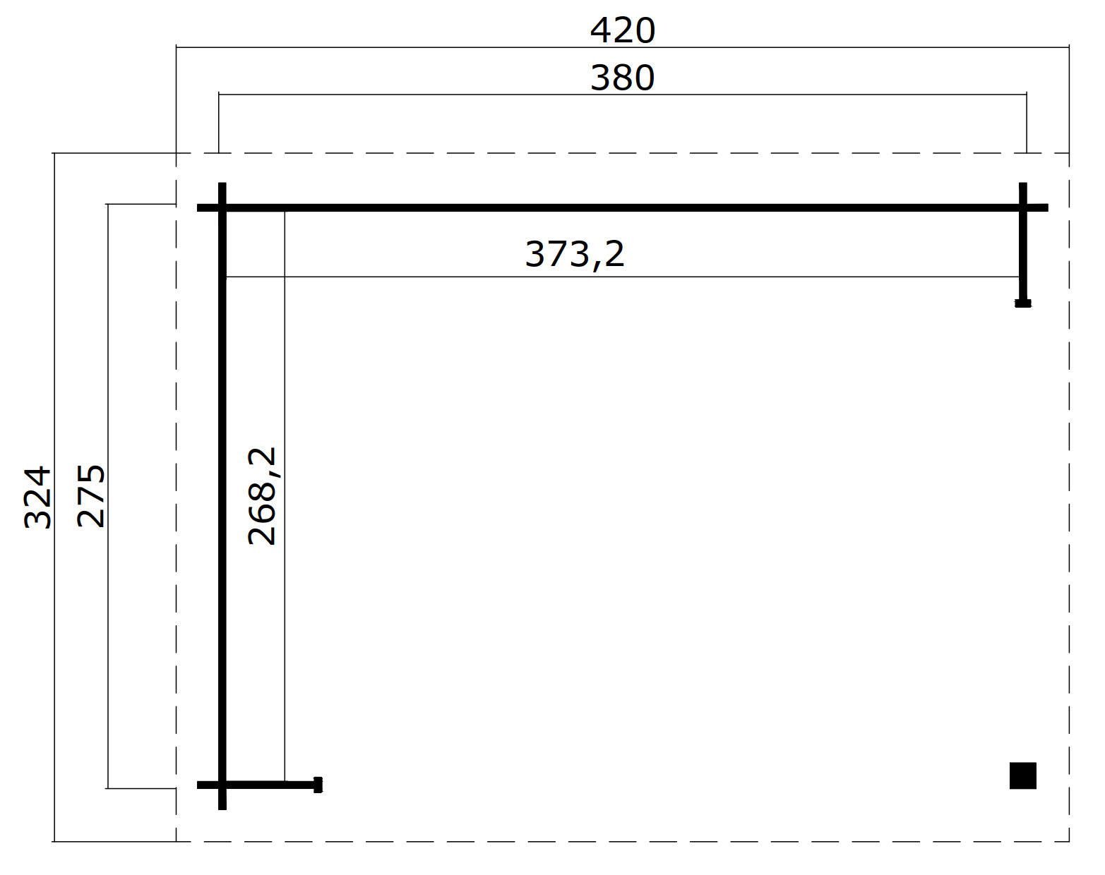 | Breite Wandaussenmaß: | 380 cm |